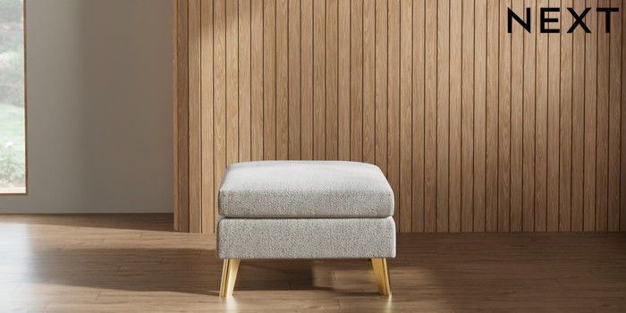 7.2.6 Buy Wilson Footstool Multi Weave Light Blue Metal Tapered - Gold from the Next UK online shop Click here to use our accessible website