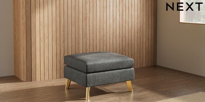 7.3.1 Buy Wilson Footstool Plush Chenille Dark Grey Metal Tapered - Gold from the Next UK online shop