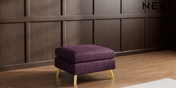 7.3.1 Buy Wilson Footstool Plush Chenille Dark Plum Purple Metal Tapered - Gold from the Next UK online shop Click here to use our accessible website