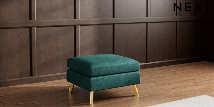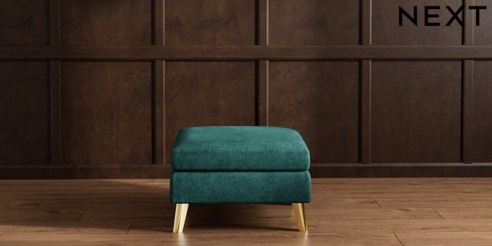 7.3.1 Buy Wilson Footstool Plush Chenille Dark Teal Green Metal Tapered - Gold from the Next UK online shop Click here to use our accessible website