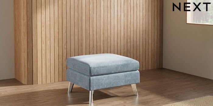 7.3.1 Buy Wilson Footstool Plush Chenille Light Blue Metal Tapered - Chrome from the Next UK online shop