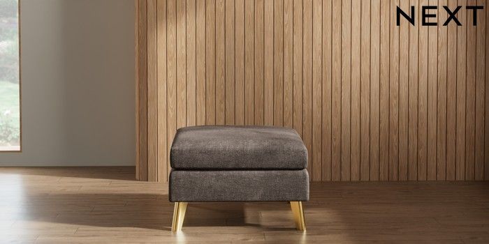 7.3.1 Buy Wilson Footstool Plush Chenille Mink Brown Metal Tapered - Gold from the Next UK online shop Click here to use our accessible website