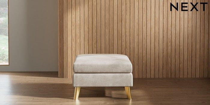 7.3.1 Buy Wilson Footstool Plush Chenille Oyster Metal Tapered - Gold from the Next UK online shop Click here to use our accessible website