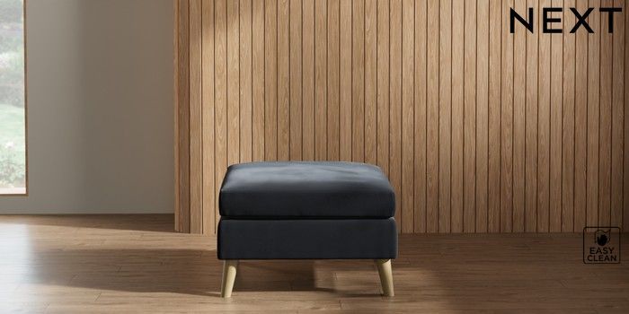 7.3.1 Buy Wilson Footstool Plush Velvet Easy Clean Charcoal Grey Retro Tapered - Light from the Next UK online shop Click here to use our accessible website