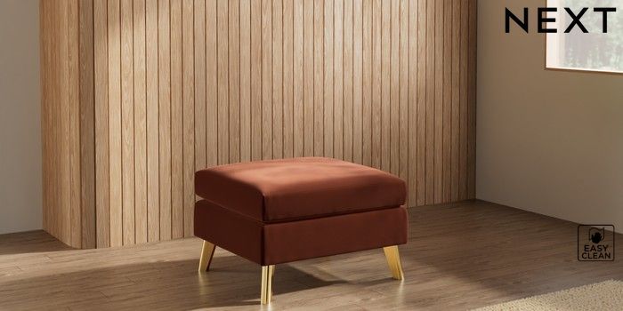 7.3.1 Buy Wilson Footstool Plush Velvet Easy Clean Ginger Orange Metal Tapered - Gold from the Next UK online shop