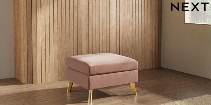 7.3.1 Buy Wilson Footstool Relaxed Linen Look Light Rust Brown Metal Tapered - Gold from the Next UK online shop