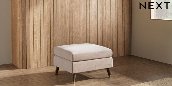 7.3.1 Buy Wilson Footstool Relaxed Linen Look Mid Natural Low Retro Tapered Metal Cap - Mid from the Next UK online shop Click here to use our accessible website