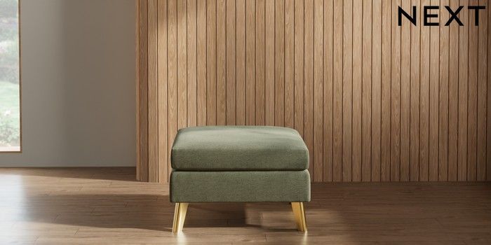 7.3.1 Buy Wilson Footstool Ripple Chenille Mid Moss Green Metal Tapered - Gold from the Next UK online shop Click here to use our accessible website