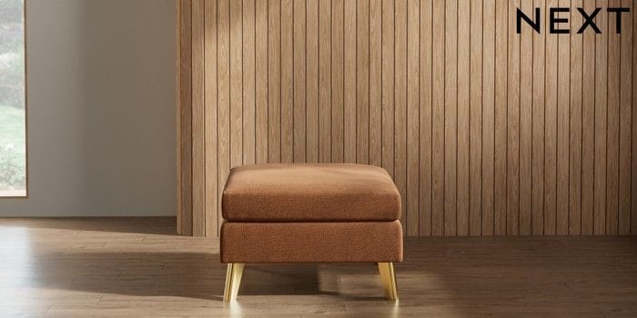 7.2.10 Buy Wilson Footstool Ripple Chenille Mid Rust Brown Metal Tapered - Gold from the Next UK online shop Click here to use our accessible website