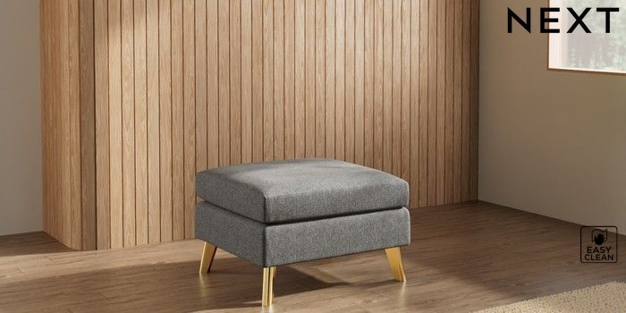 7.3.1 Buy Wilson Footstool Tweedy Blend Easy Clean Dark Grey Metal Tapered - Gold from the Next UK online shop Click here to use our accessible website