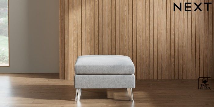 7.3.1 Buy Wilson Footstool Tweedy Blend Easy Clean Light Silver Grey Metal Tapered - Chrome from the Next UK online shop