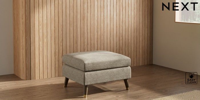 7.3.1 Buy Wilson Footstool Woven Chenille Easy Clean Mid Natural Low Retro Tapered Metal Cap - Mid from the Next UK online shop Click here to use our accessible website