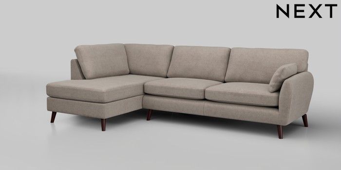 6.12.1 Buy Wilson Large Corner Chaise - Left Hand Boucle Chenille Light Natural Retro Tapered - Dark Brown from the Next UK online shop Click here to use our accessible website