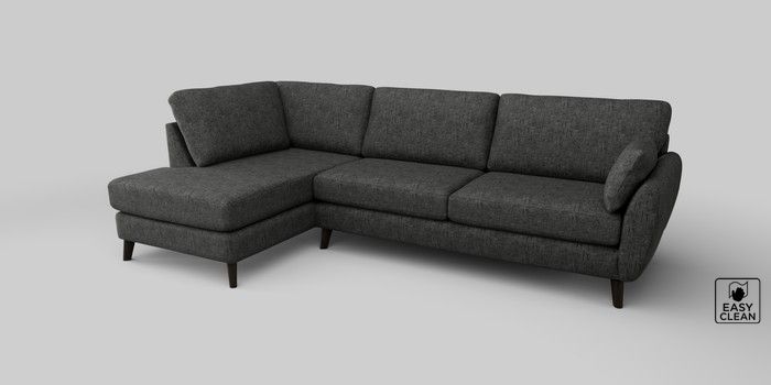 6.12.1 Buy Wilson Large Corner Chaise - Left Hand Boucle Weave Easy Clean Charcoal Grey Retro Tapered - Dark from the Next UK online shop Click here to use our accessible website