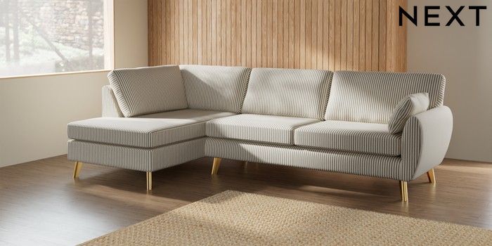 7.2.10 Buy Wilson Large Corner Chaise - Left Hand Chenille Stripe Moss Green Metal Tapered - Gold from the Next UK online shop Click here to use our accessible website