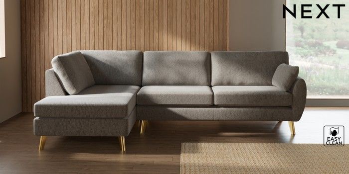 7.3.1 Buy Wilson Large Corner Chaise - Left Hand Chunky Boucle Easy Clean Dove Metal Tapered - Gold from the Next UK online shop