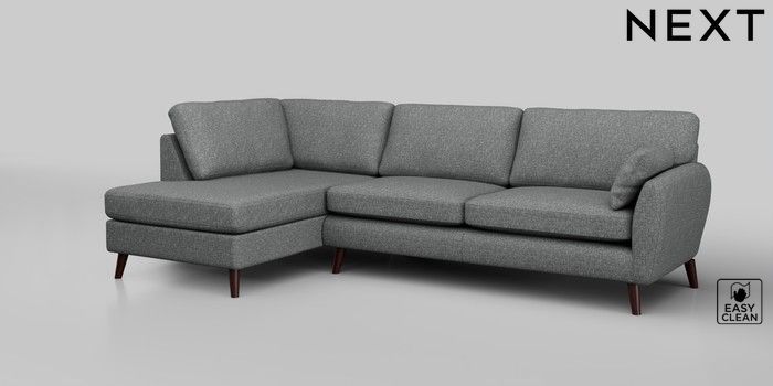 6.12.1 Buy Wilson Large Corner Chaise - Left Hand Chunky Boucle Easy Clean Mid Grey Retro Tapered - Dark Brown from the Next UK online shop Click here to use our accessible website