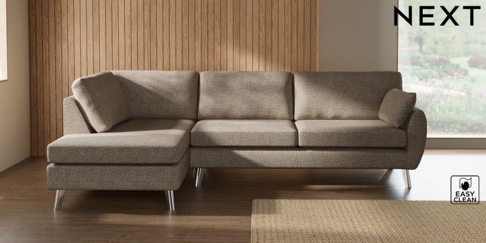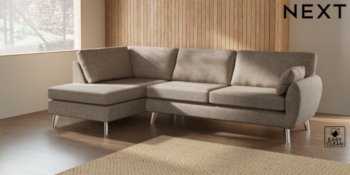 7.3.1 Buy Wilson Large Corner Chaise - Left Hand Chunky Boucle Easy Clean Mid Natural Metal Tapered - Chrome from the Next UK online shop