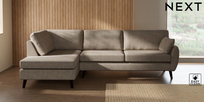 7.3.1 Buy Wilson Large Corner Chaise - Left Hand Chunky Boucle Easy Clean Mid Natural Retro Tapered - Dark from the Next UK online shop