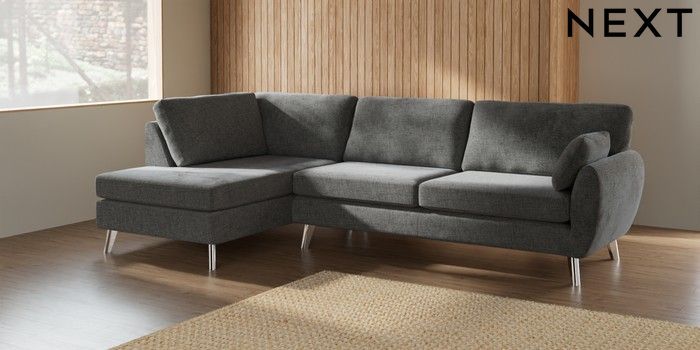 7.3.1 Buy Wilson Large Corner Chaise - Left Hand Chunky Chenille Dark Grey Metal Tapered - Chrome from the Next UK online shop