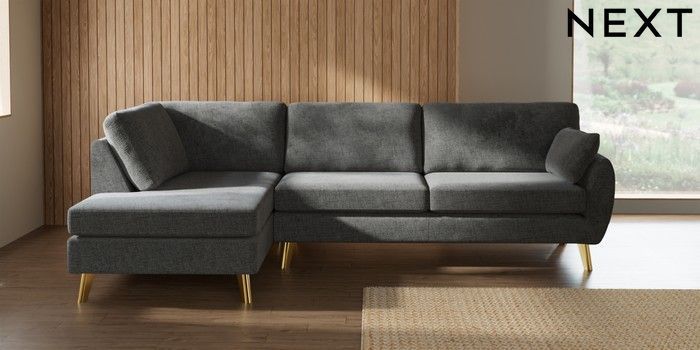 7.3.1 Buy Wilson Large Corner Chaise - Left Hand Chunky Chenille Dark Grey Metal Tapered - Gold from the Next UK online shop