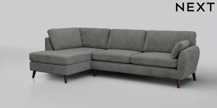 6.12.1 Buy Wilson Large Corner Chaise - Left Hand Chunky Chenille Dark Grey Retro Tapered - Dark Brown from the Next UK online shop Click here to use our accessible website