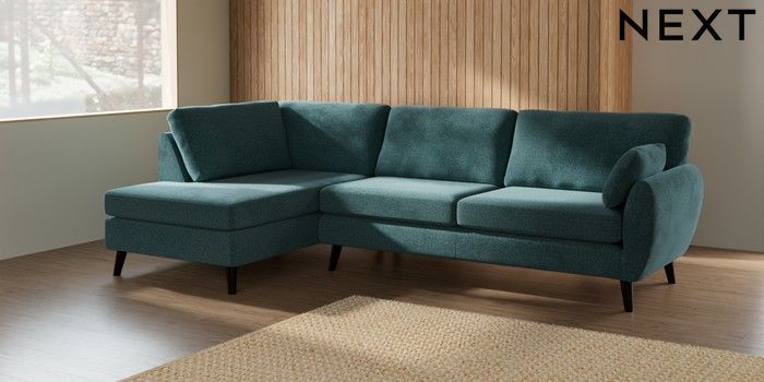7.3.1 Buy Wilson Large Corner Chaise - Left Hand Chunky Chenille Mid Teal Green Retro Tapered - Dark from the Next UK online shop