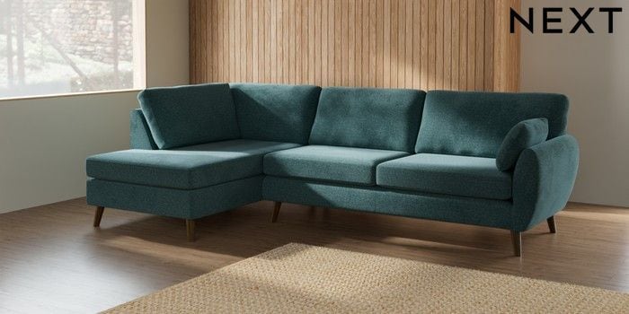7.3.1 Buy Wilson Large Corner Chaise - Left Hand Chunky Chenille Mid Teal Green Retro Tapered - Mid from the Next UK online shop