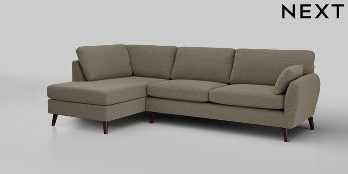 6.12.1 Buy Wilson Large Corner Chaise - Left Hand Chunky Marl Light Olive Green Retro Tapered - Dark Brown from the Next UK online shop Click here to use our accessible website