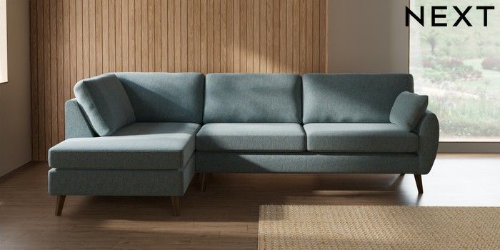 7.3.1 Buy Wilson Large Corner Chaise - Left Hand Chunky Marl Mid Blue Retro Tapered - Mid from the Next UK online shop