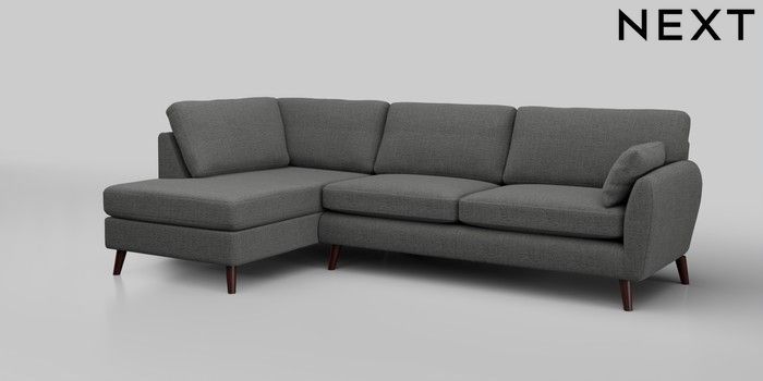 6.12.1 Buy Wilson Large Corner Chaise - Left Hand Chunky Texture Dark Grey Retro Tapered - Dark Brown from the Next UK online shop Click here to use our accessible website
