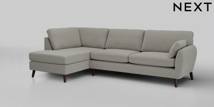 6.12.1 Buy Wilson Large Corner Chaise - Left Hand Chunky Texture Dove Retro Tapered - Dark Brown from the Next UK online shop Click here to use our accessible website