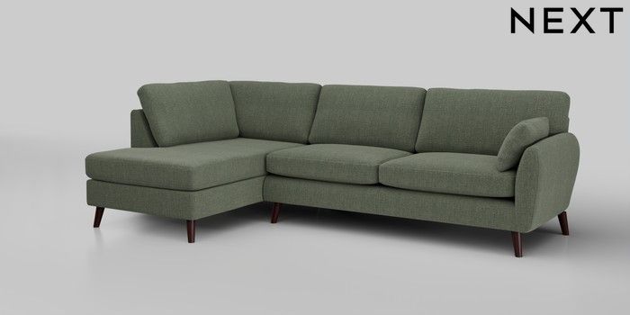 6.12.1 Buy Wilson Large Corner Chaise - Left Hand Chunky Texture Mid Forest Green Retro Tapered - Dark Brown from the Next UK online shop Click here to use our accessible website
