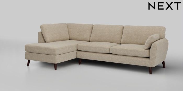 6.12.1 Buy Wilson Large Corner Chaise - Left Hand Chunky Weave Cream Retro Tapered - Dark Brown from the Next UK online shop Click here to use our accessible website