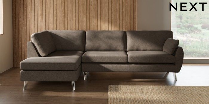 7.3.1 Buy Wilson Large Corner Chaise - Left Hand Chunky Weave Dark Natural Metal Tapered - Chrome from the Next UK online shop
