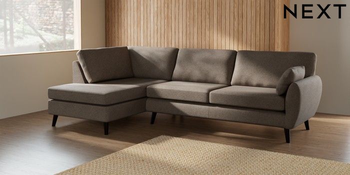 7.3.1 Buy Wilson Large Corner Chaise - Left Hand Chunky Weave Dark Natural Retro Tapered - Dark from the Next UK online shop Click here to use our accessible website