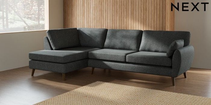 7.3.1 Buy Wilson Large Corner Chaise - Left Hand Cotswold Chenille Dark Grey Retro Tapered - Mid from the Next UK online shop Click here to use our accessible website