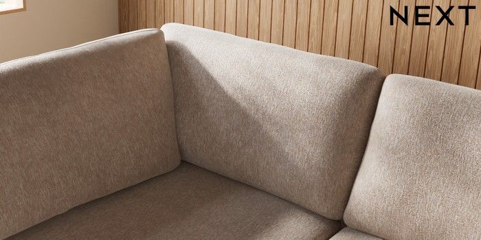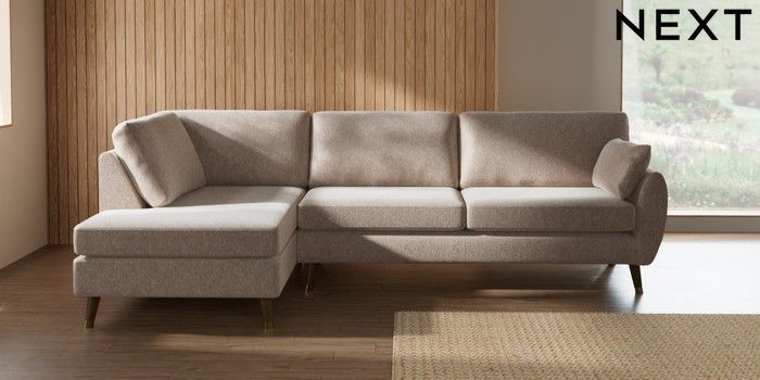 7.3.1 Buy Wilson Large Corner Chaise - Left Hand Cotswold Chenille Light Natural Low Retro Tapered Metal Cap - Mid from the Next UK online shop