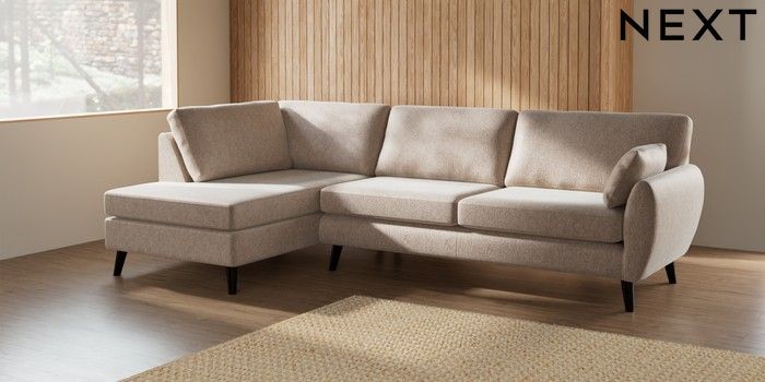 7.3.1 Buy Wilson Large Corner Chaise - Left Hand Cotswold Chenille Light Natural Retro Tapered - Dark from the Next UK online shop