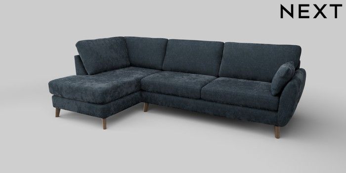 6.12.13 Buy Wilson Large Corner Chaise - Left Hand Distressed Velour Midnight Blue Retro Tapered - Mid from the Next UK online shop Click here to use our accessible website