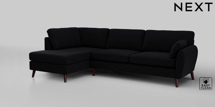 6.12.1 Buy Wilson Large Corner Chaise - Left Hand Fine Chenille Easy Clean Black Retro Tapered - Dark Brown from the Next UK online shop Click here to use our accessible website
