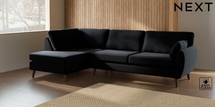 7.3.1 Buy Wilson Large Corner Chaise - Left Hand Fine Chenille Easy Clean Black Retro Tapered - Mid from the Next UK online shop Click here to use our accessible website
