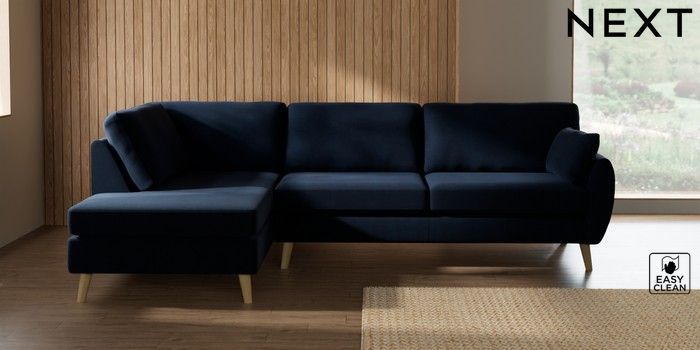 7.3.1 Buy Wilson Large Corner Chaise - Left Hand Fine Chenille Easy Clean Dark Navy Blue Retro Tapered - Light from the Next UK online shop