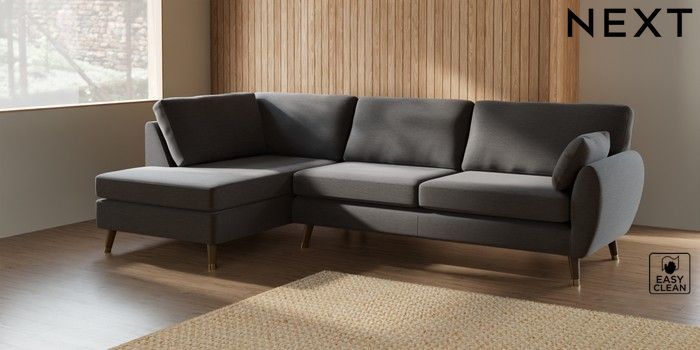 7.3.1 Buy Wilson Large Corner Chaise - Left Hand Fine Chenille Easy Clean Dark Smoke Grey Low Retro Tapered Metal Cap - Mid from the Next UK online shop