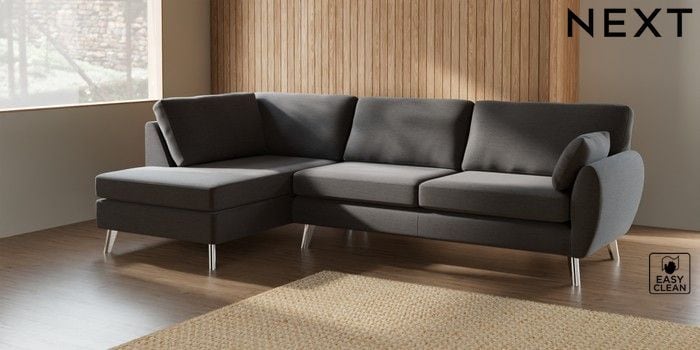 7.3.1 Buy Wilson Large Corner Chaise - Left Hand Fine Chenille Easy Clean Dark Smoke Grey Metal Tapered - Chrome from the Next UK online shop
