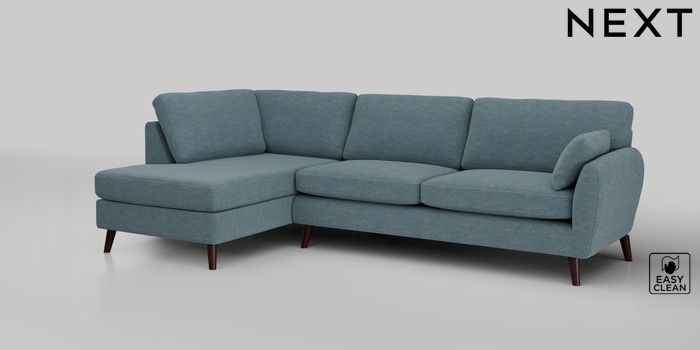 6.12.1 Buy Wilson Large Corner Chaise - Left Hand Fine Chenille Easy Clean Mid Blue Retro Tapered - Dark Brown from the Next UK online shop Click here to use our accessible website