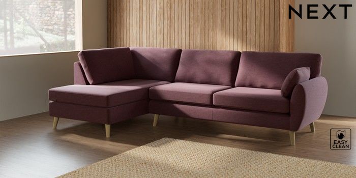 7.3.1 Buy Wilson Large Corner Chaise - Left Hand Fine Chenille Easy Clean Mid Mulberry Purple Retro Tapered - Light from the Next UK online shop
