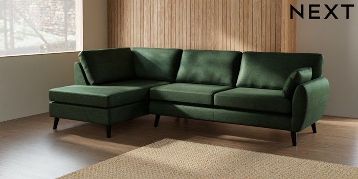 7.3.1 Buy Wilson Large Corner Chaise - Left Hand Luxe Chenille Dark Green Retro Tapered - Dark from the Next UK online shop