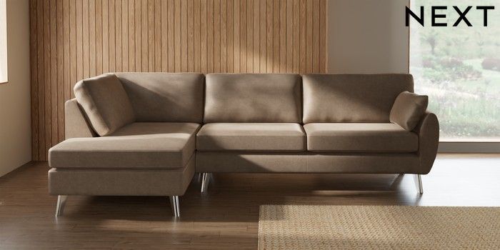 7.3.1 Buy Wilson Large Corner Chaise - Left Hand Luxe Chenille Mid Camel Beige Metal Tapered - Chrome from the Next UK online shop