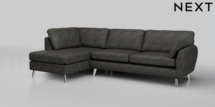 6.12.1 Buy Wilson Large Corner Chaise - Left Hand Monza Faux Leather Easy Clean Dark Grey Metal Tapered - Chrome from the Next UK online shop Click here to use our accessible website